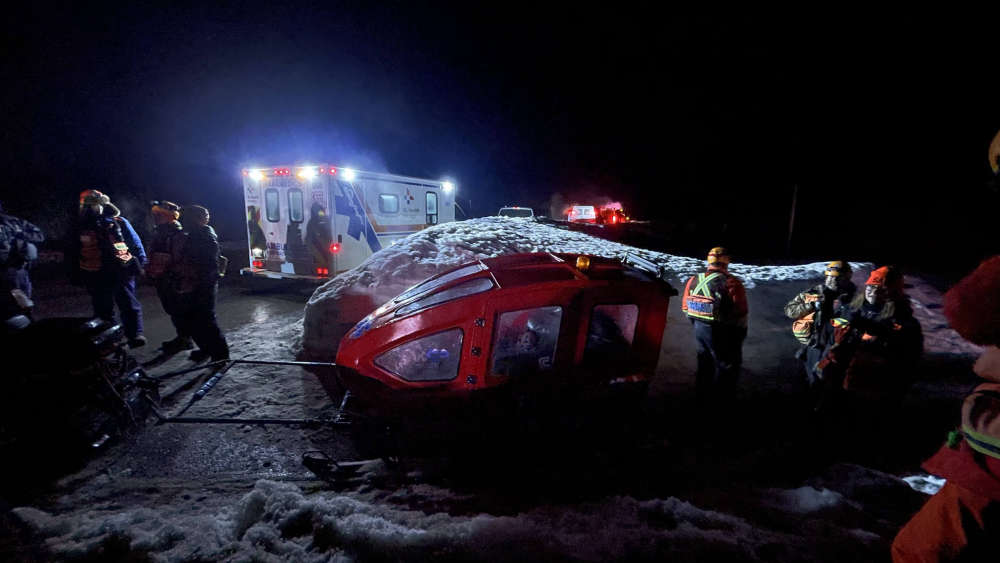 One person rescued from a snowmobile accident 16kms in on Logger School Road early Saturday